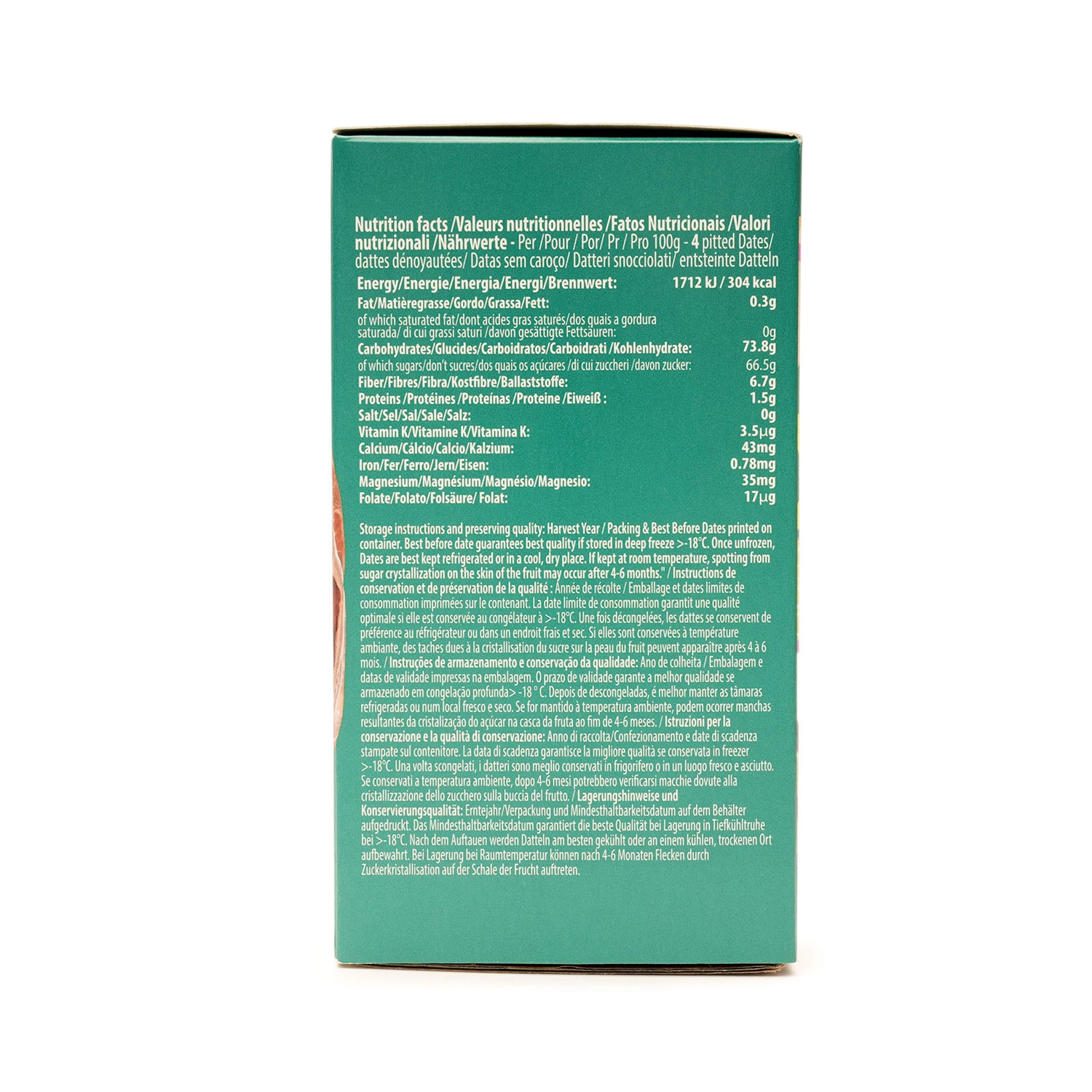 Am besten lagerst du die Datteln kühl und trocken. Im Kühlschrank halten sie sich mehrere Monate frisch, eingefroren sogar bis zu einem Jahr – ohne an Geschmack zu verlieren.